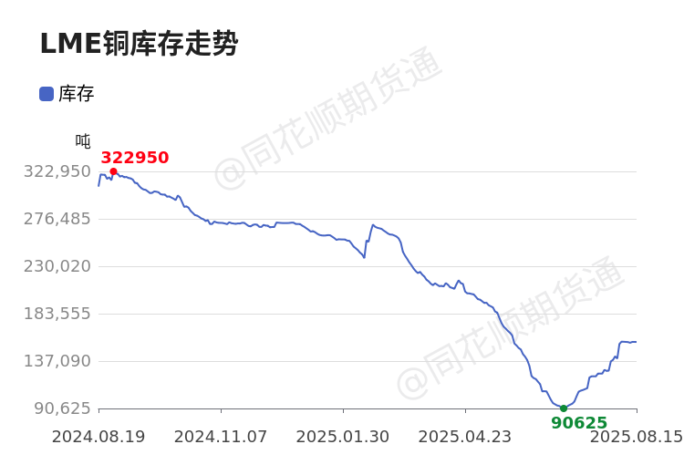 LME铜库存8月15日已跌至155800.00吨红牛配资,当日跌幅0.03%,周跌幅0.03%,月涨幅28.76%。