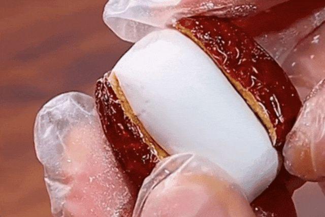 1、把大枣洗净去核剪开,糯米面加凉水揉成团,揪小块搓成条塞进红枣里,水开蒸 10 分钟。