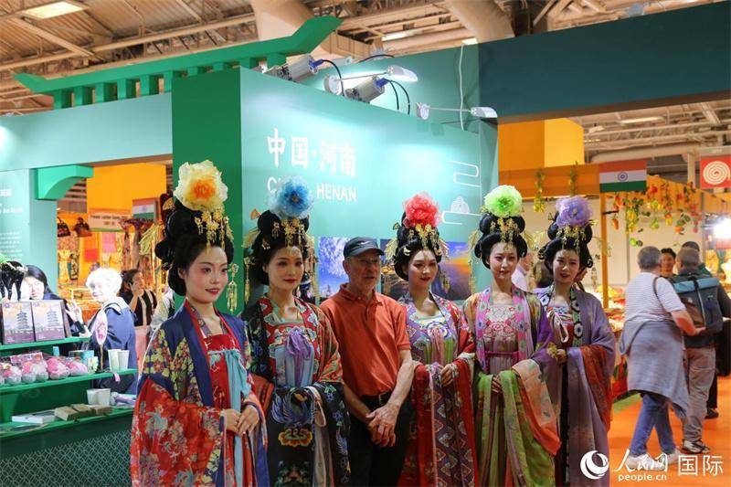 非遗文化展示成为展览的又一大亮点。台绣、团扇、剪纸、泥咕咕等传统工艺精品纷纷亮相,非遗传承人还现场示范,近距离向观众展示中华传统文化的独特魅力。在河南展区,不少参观者与身着唐代仕女服饰的参展人员合影留念。法国观众塞巴斯蒂安在合影后兴奋地告诉记者,“中国传统服饰精美绝伦,宛如一件件奢侈艺术品。”
