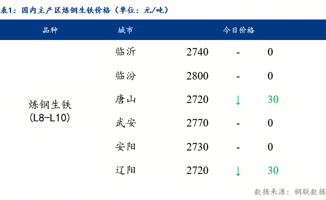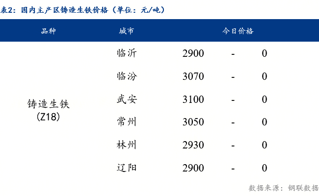 15日全国生铁价格个别调整,成交一般。其中10城炼钢生铁L8-L10均价2691元/吨股巢配资,较上一交易日价格下调6元/吨;10城铸造生铁Z18均价2981元/吨,较上一交易日价格持稳;8城球墨铸铁Q10均价2985元/吨,较上一交易日价格持稳。