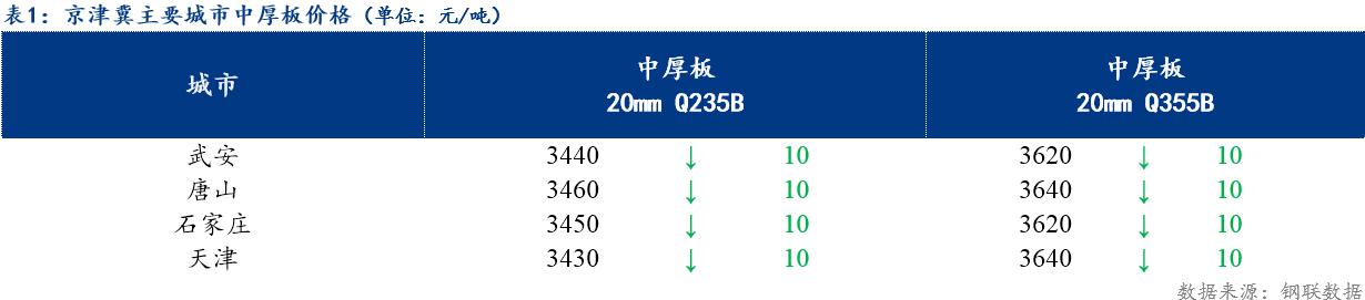 今日京津冀地区中厚板价格主要城市下跌10元/吨易启胜,报价3430-3460元/吨。