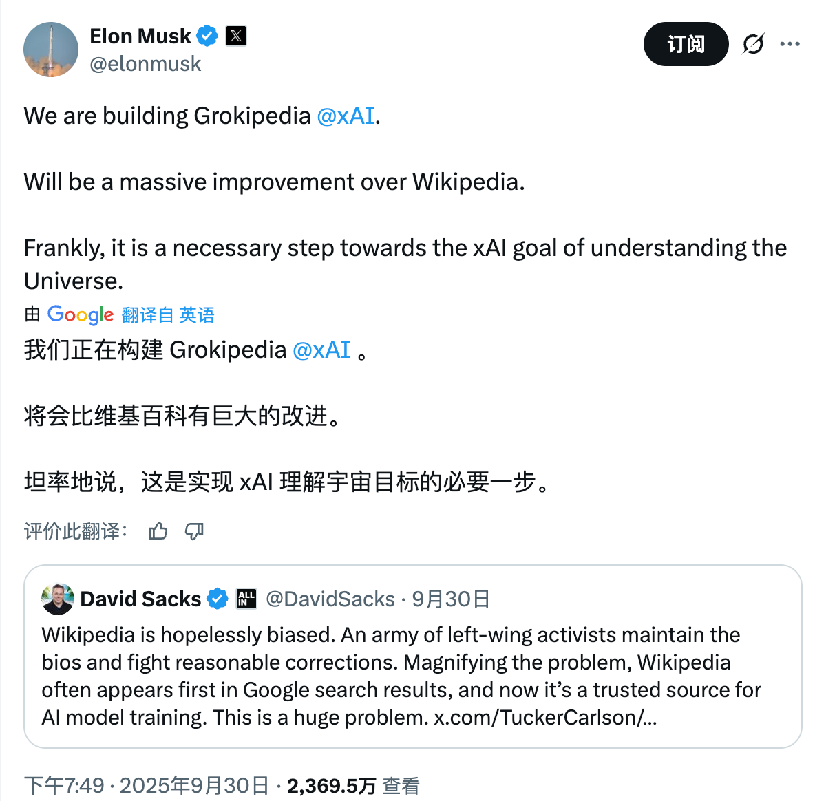马斯克开发Grokipedia