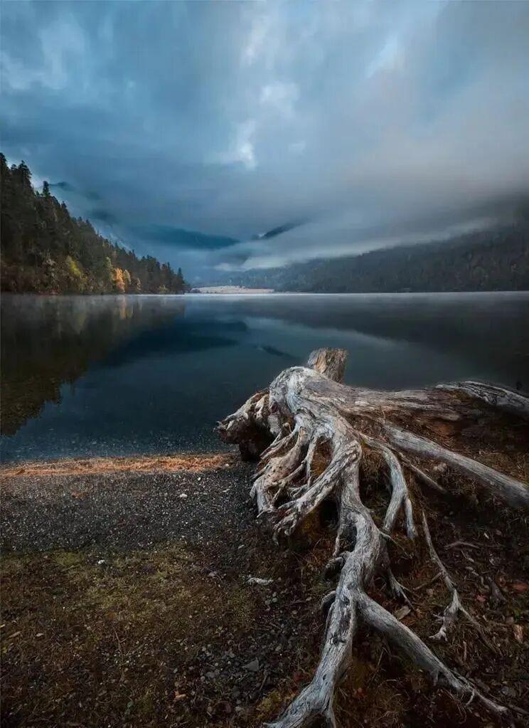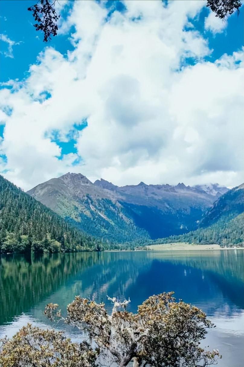 伍须海,幽静而神奇,完全保持着原始生态。南北耸立着两座梳子形的山峰,西面是浪古则雪山,东南边至朗加达卡山梁。