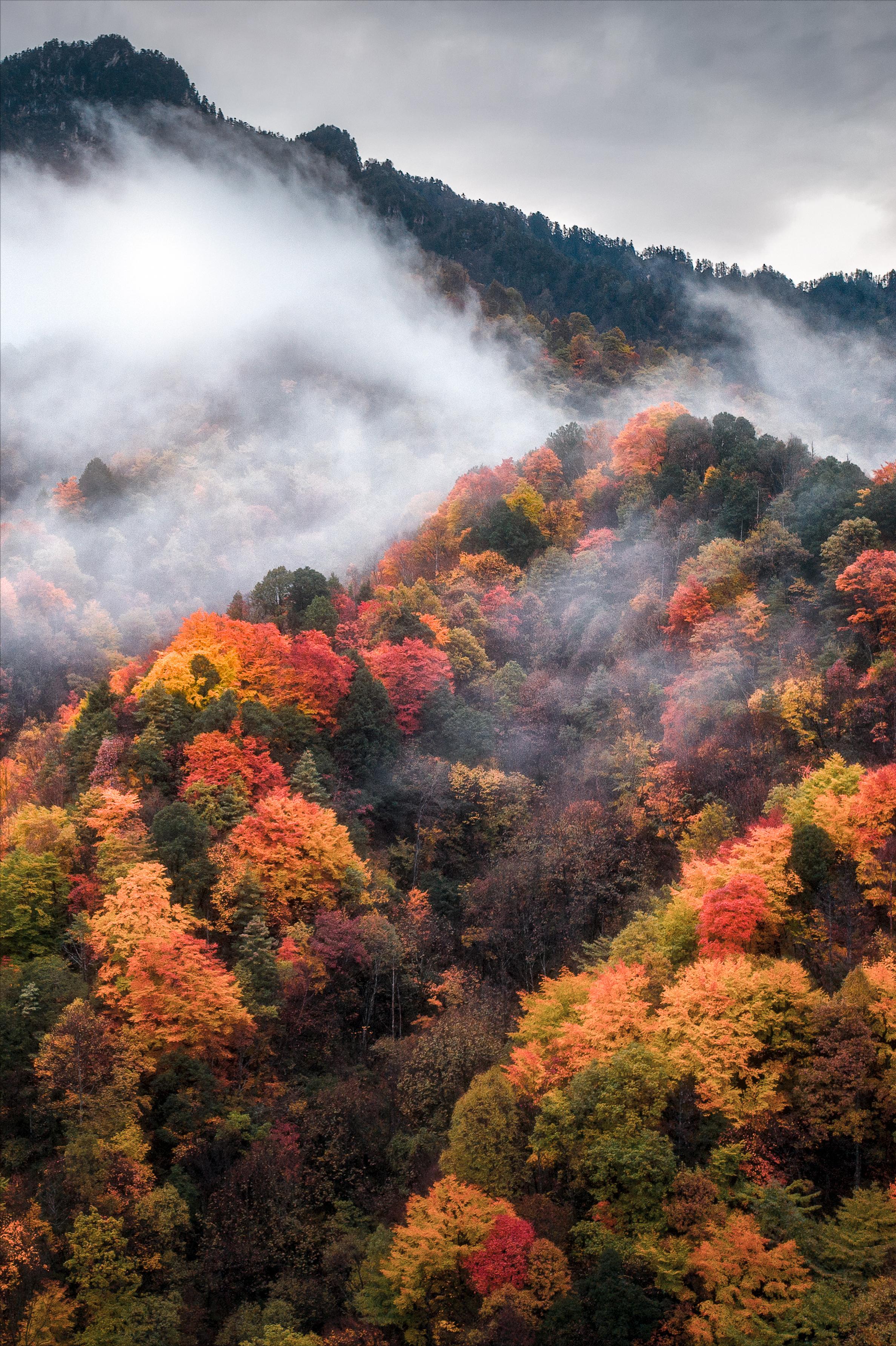 太白山的秋天如同一幅五彩斑斓的油画。从山底到山巅,数十里彩林绵延不断。连接太白县和洋县的太洋公路,也被称为 “秦岭里的景观大道”,沿途风景绝美。