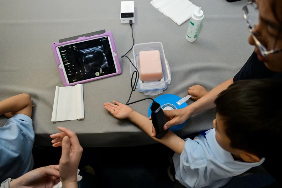在门诊3楼超声医学科,在超声医学科医生的指导下,青少年们化身“小超人”为自己的父母进行超声检查,活学活用,在体验中了解超声诊断的实用科普。“穿刺、活检、射频消融这些超声专业词汇给我留下深刻印象。”体验者小李说。此外,人工智能超声辅助诊断系统也让青少年们好奇不已,该智能系统通过深度学习技术处理超声图像,实现疾病的智能诊断,充分体现数智化超声的发展趋势。